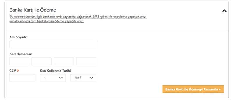 Ödeme aşaması adımında "Banka Kartı ile Ödeme" seçeğini kullanarak, siparişinizi sonlandırabilirsiniz.